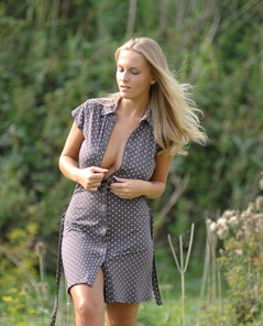 All natural body on an all natural woman! Her button-up dress would be perfect for spreading out on the grass under a tree for a long lazy day of lovemaking and worshipping those lush curves